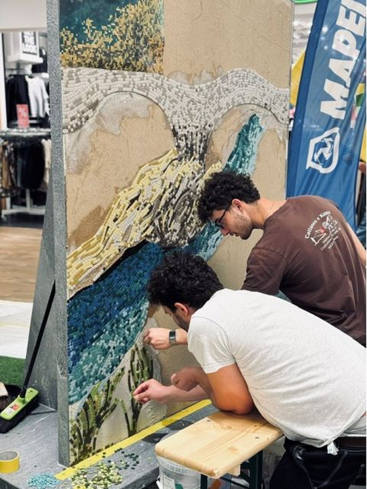 La realizzazione del mosaico ha offerto al grande pubblico l’occasione di avvicinarsi a questa tecnica di decorazione artistica, presentata in chiave didattica. L’iniziativa ha inoltre riservato uno spazio dedicato ai più giovani, che hanno potuto sperimentare l’arte dell’accostamento di forme e colori, esprimendo liberamente la propria creatività.