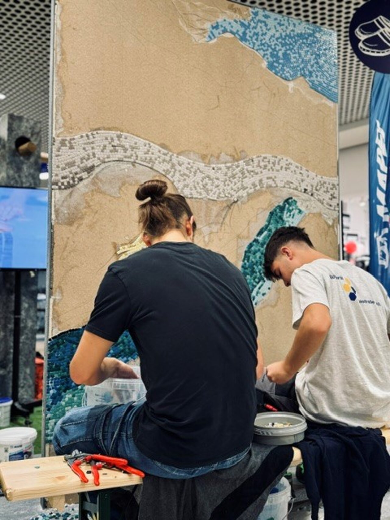 Sulla scia del successo riscosso con la realizzazione del mosaico dedicato al Monte Generoso, avvenuta nel maggio 2024, e oggi esposto nell’atrio principale della scuola, gli apprendisti piastrellisti AFC del CPT di Mendrisio, guidati dal loro docente Nicolò Brivio, hanno ricevuto un nuovo incarico: la progettazione e l’esecuzione di un mosaico destinato al Centro Commerciale di Tenero.